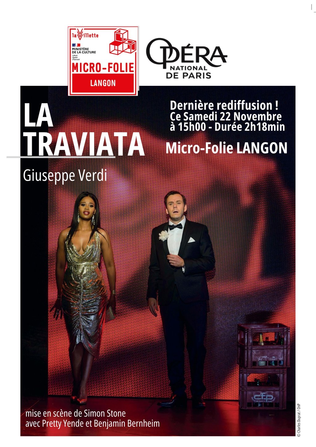 Dans le cadre de son partenariat avec Micro-Folie, l’Opéra national de Paris a le plaisir de proposer la diffusion gratuite de « La Traviata », opéra de Giuseppe Verdi.