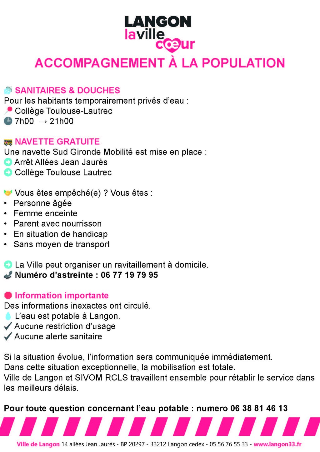 ✔️ Les dispositifs d’accompagnement sont maintenus (distribution d’eau, sanitaires, navette, aide aux personnes fragiles)