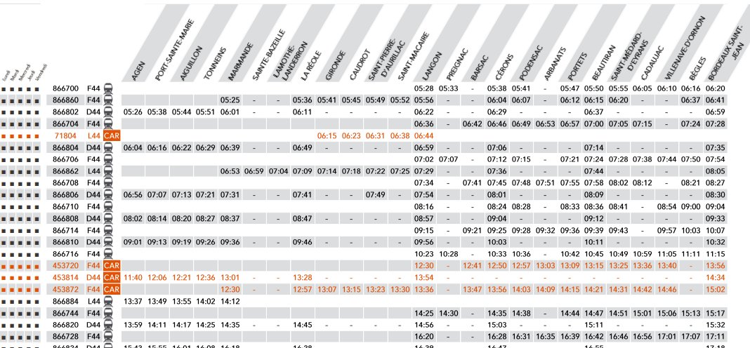 Pour rappel, jusqu'au 20 mars, les liaisons TER sur la Ligne 44 (Bordeaux-Langon-Agen) sont assurées par des bus de substitution pour raison de travaux.
