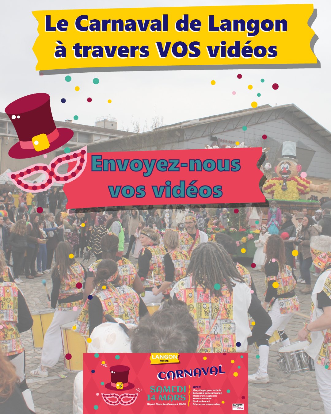 Cette année, la Ville de Langon prépare une vidéo souvenir du Carnaval… et vous pouvez en faire partie !