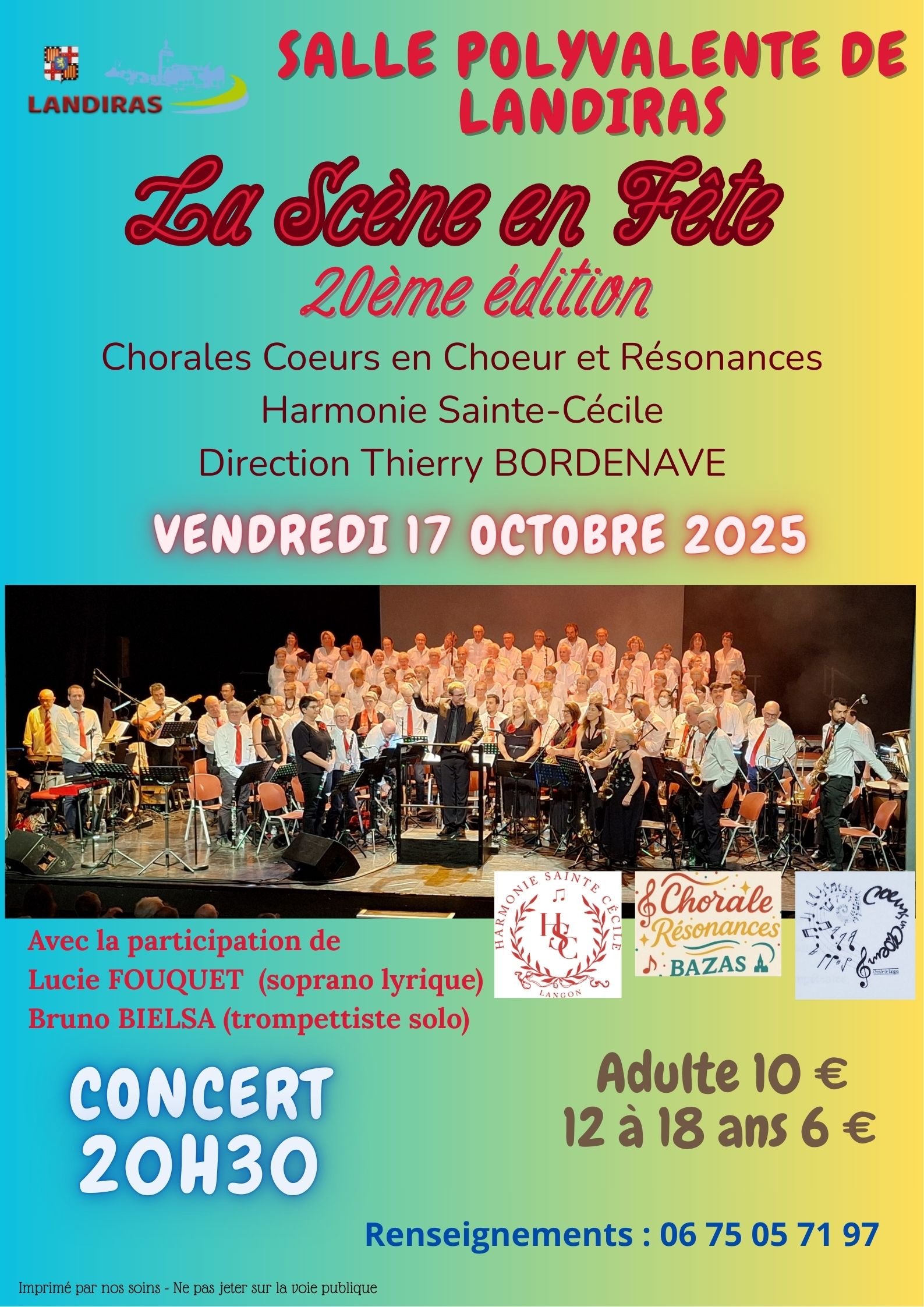 Ce vendredi 17 octobre 2025 à 20h30 - spectacle SCENE EN FETE 2025 - salle des fêtes de Landiras (affiche ci-dessus) - direction Thierry BORDENAVE - avec Lucie FOUQUET, soprano lyrique et Bruno BIELSA, trompettiste solo.