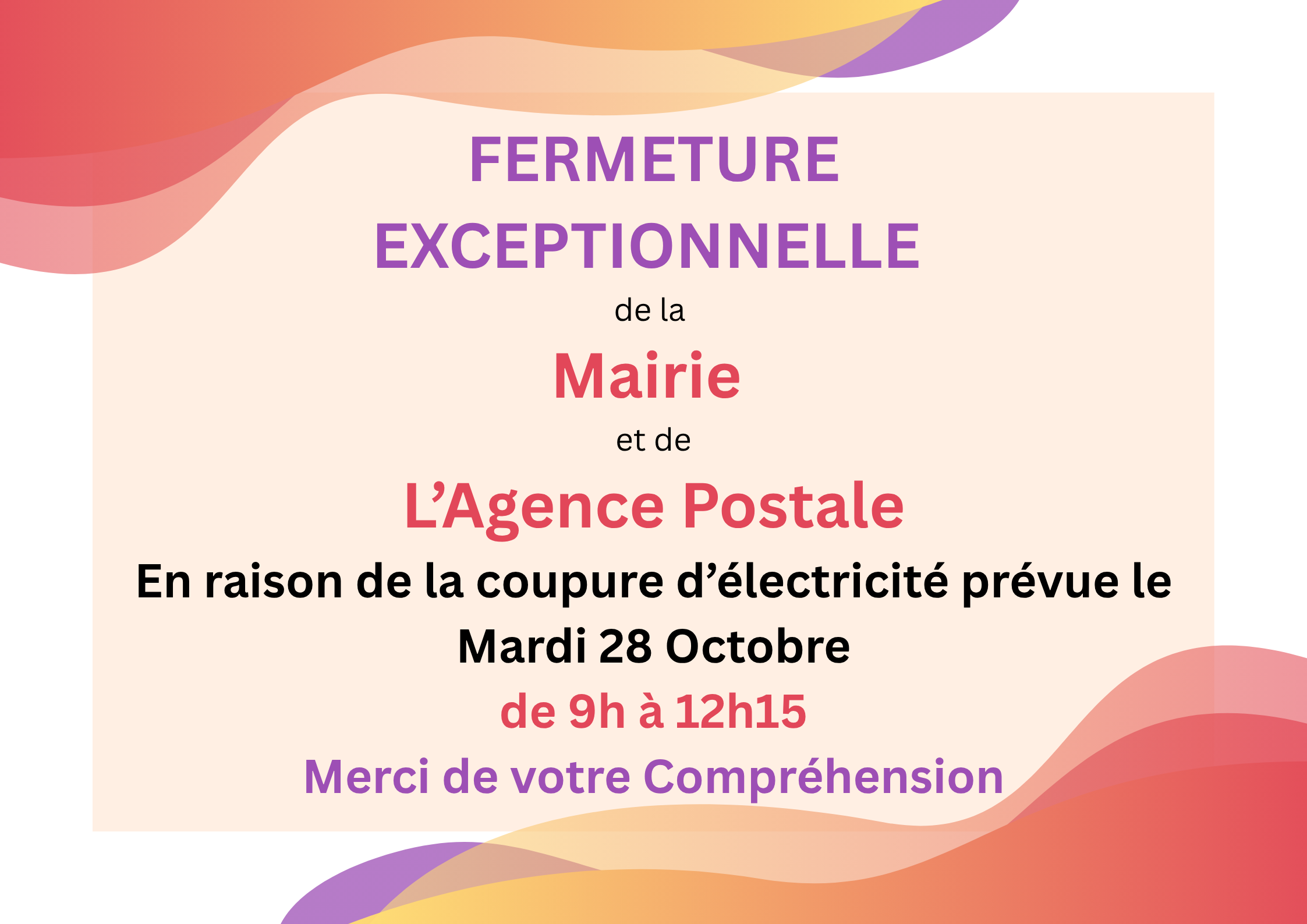 FERMETURE EXCEPTIONNELLE DE LA MAIRIE MARDI 28 OCTOBRE