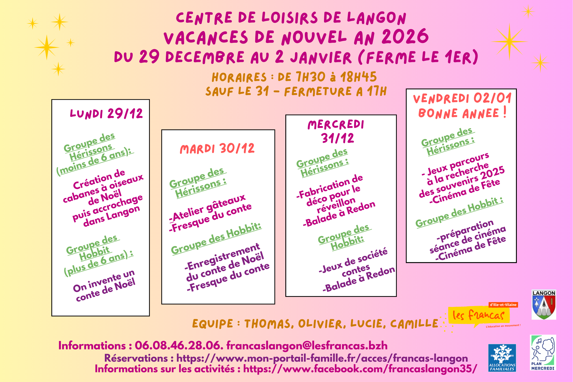 et plein de belles activités (programme en PJ), alors n'hésitez pas ! Thomas, Olivier, Lucie, Camille attendent les enfants avec plaisir !