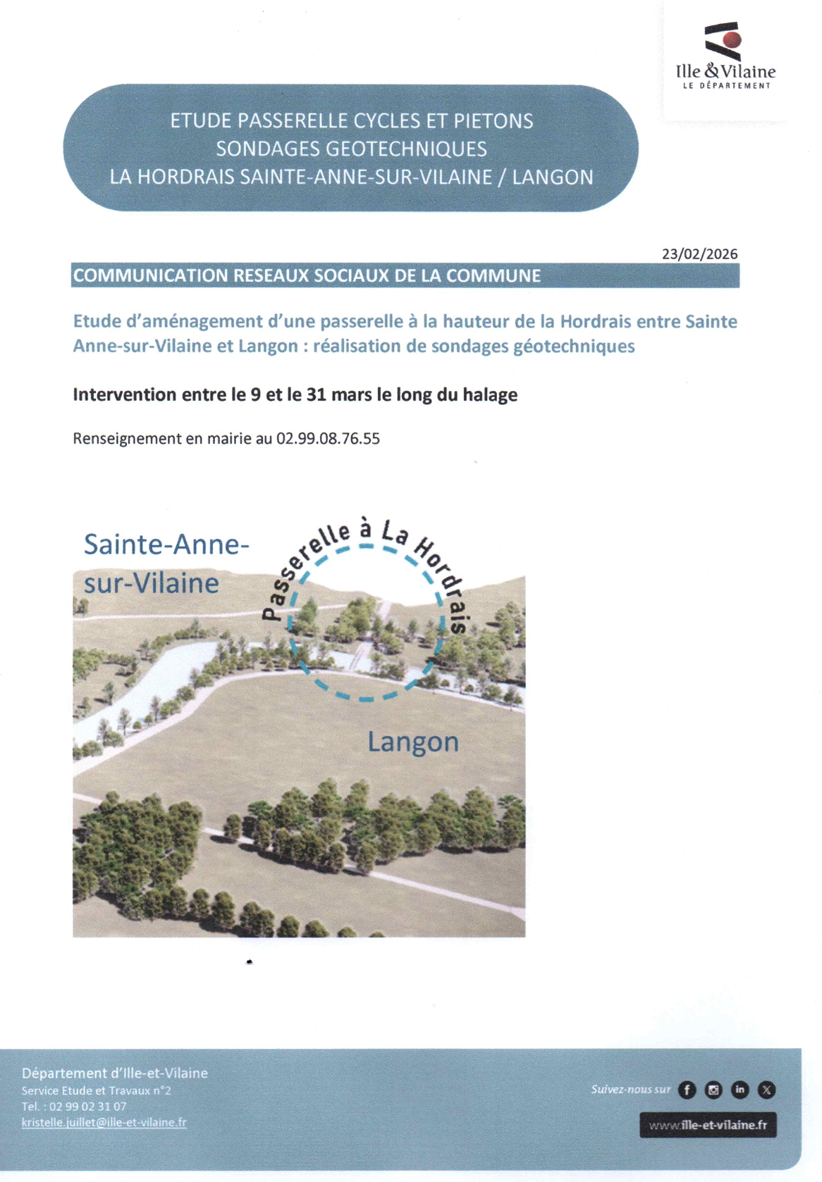 Etude d'une passerelle cycles et piétons-Sondages Géotechniques entre la Hordrais et Sainte-Anne-sur-Vilaine
