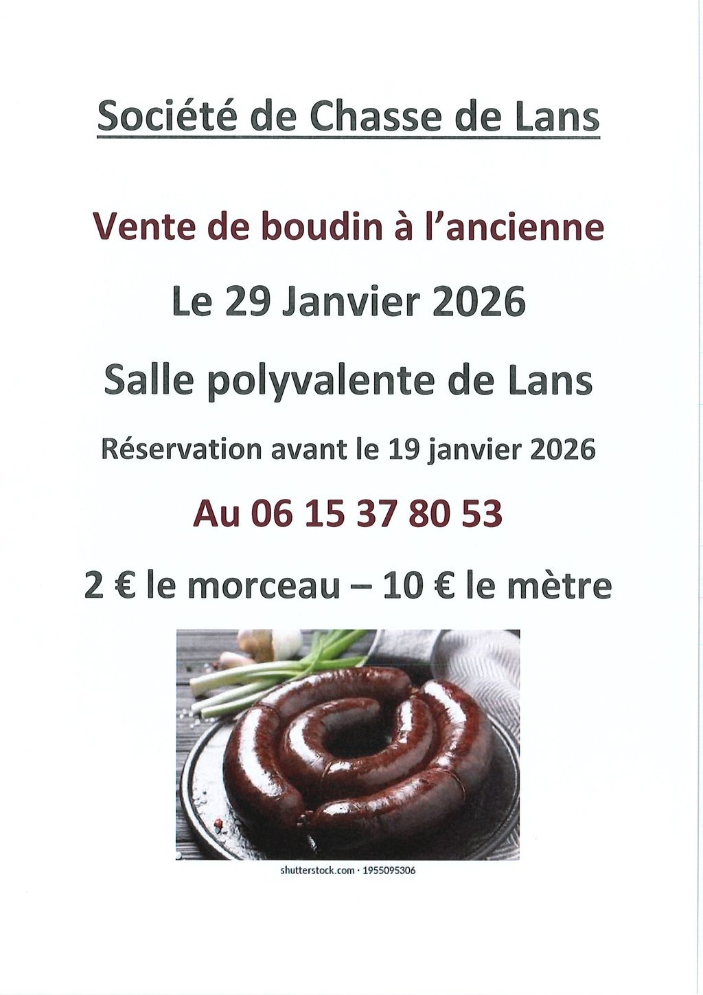 La société de Chasse vous propose une vente de boudin à l'ancienne