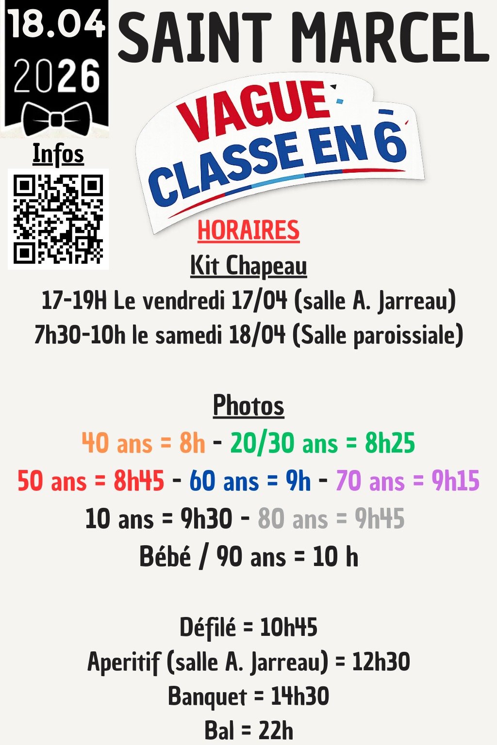 Samedi 18 avril 2026 - Vague des conscrits de la classe en 6.