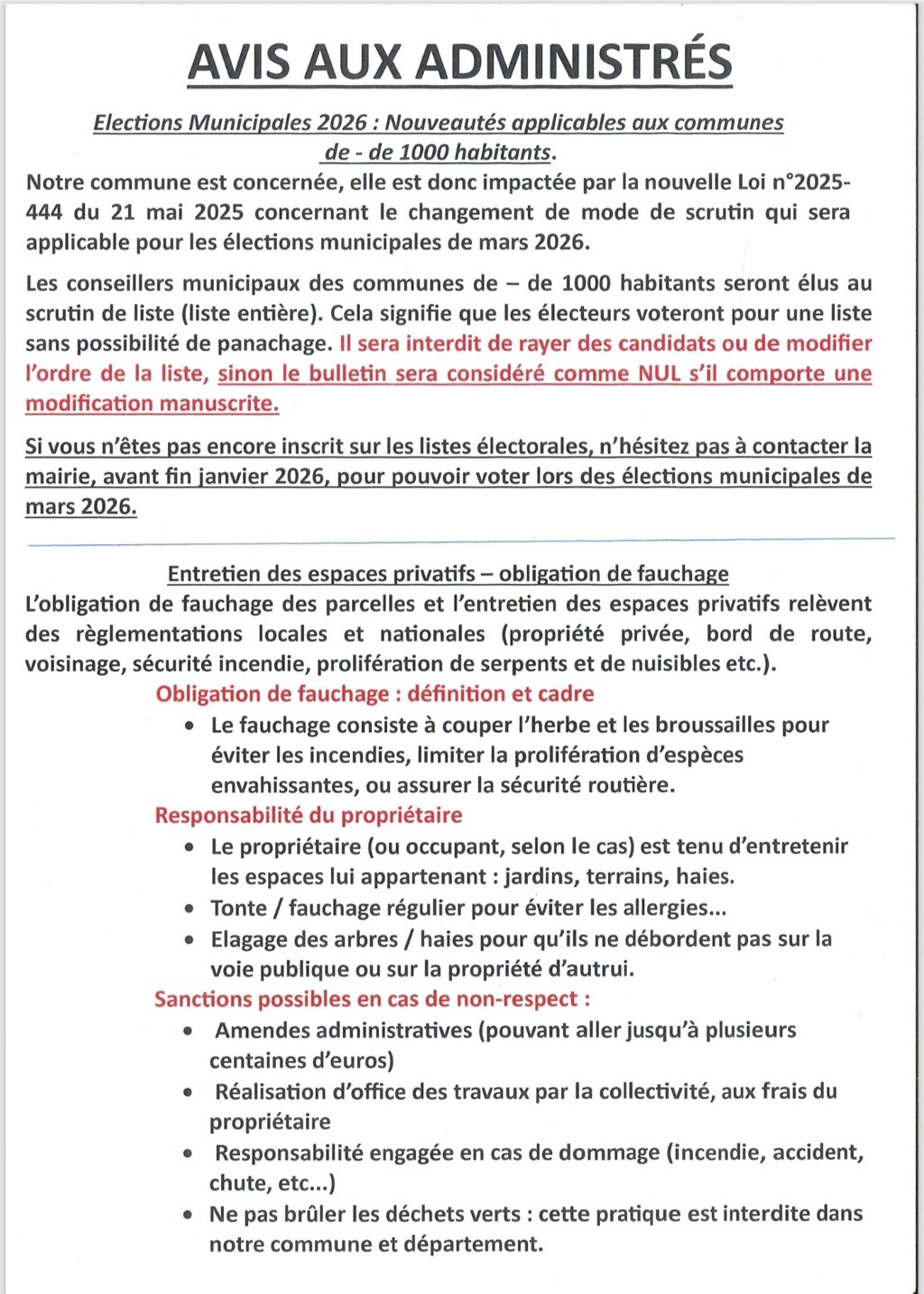 Avis aux administrés
