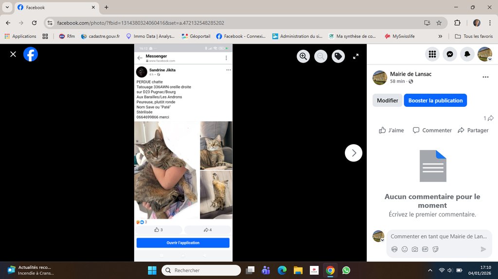 Perdue chatte tatouage 336AWN oreille droite sur D23 PUGNAC /BOURG