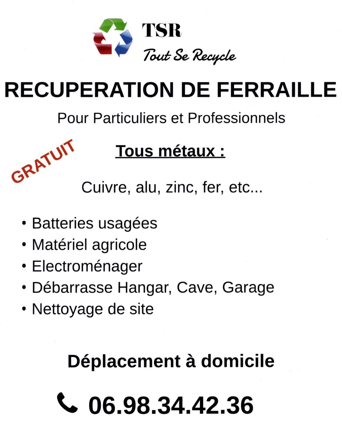 Enlèvement ; Récupération ; Recyclage de toutes ferrailles et métaux.