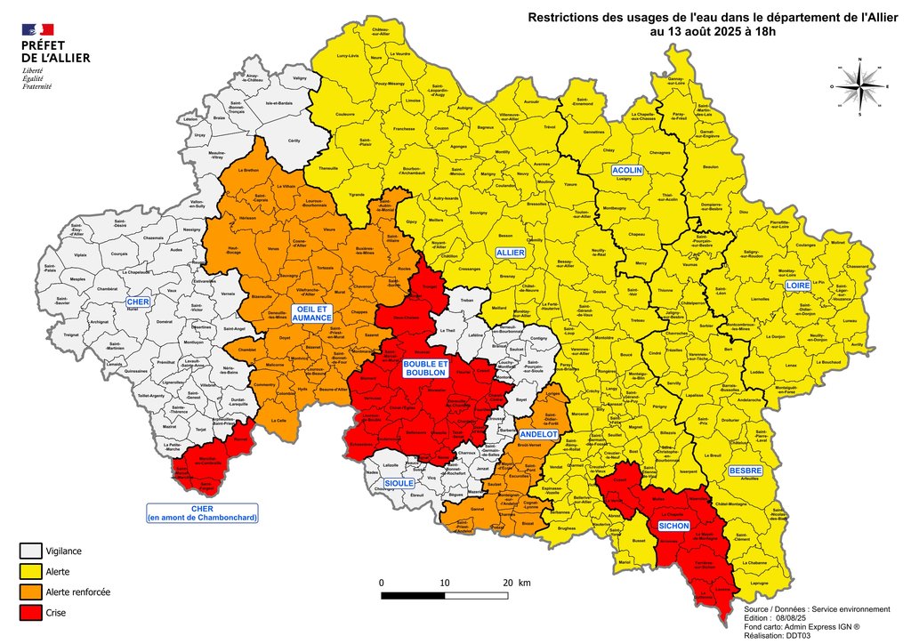 Un nouvel arrêté préfectoral est en vigueur à partir du mercredi 13 août à 18h. Des restrictions d'eau sont appliquées dans plusieurs bassins versants du département pour faire face à la sécheresse.