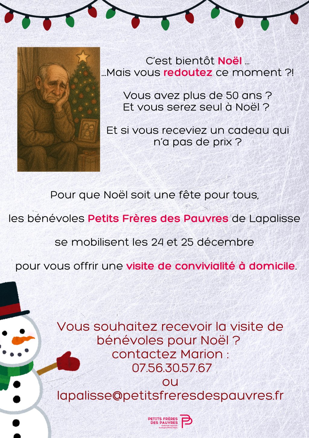 Publié le mercredi 10 décembre 2025 - Petits frères des pauvres - équipe Lapalisse