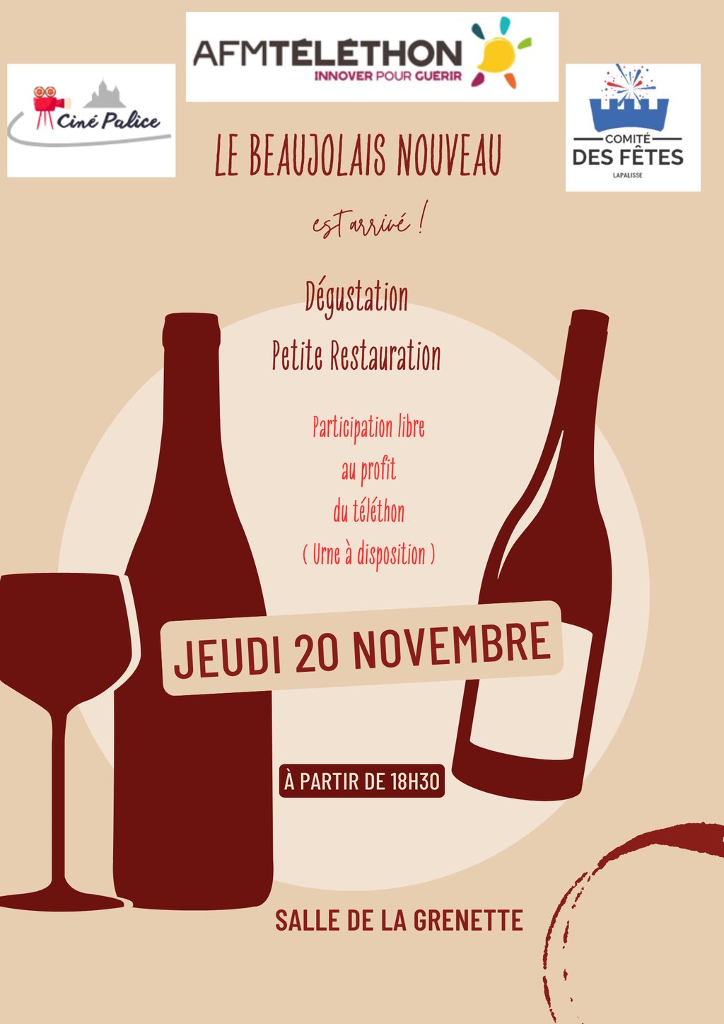 Animation Beaujolais Nouveau, avec AFM Téléthon