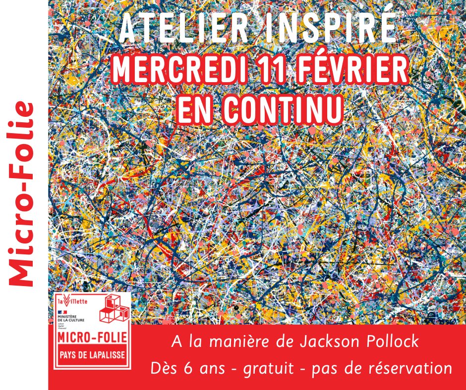 Ce mercredi 11 février, atelier inspiré de l'oeuvre de Jackson Pollock ! Venez donner libre cours à votre créativité !