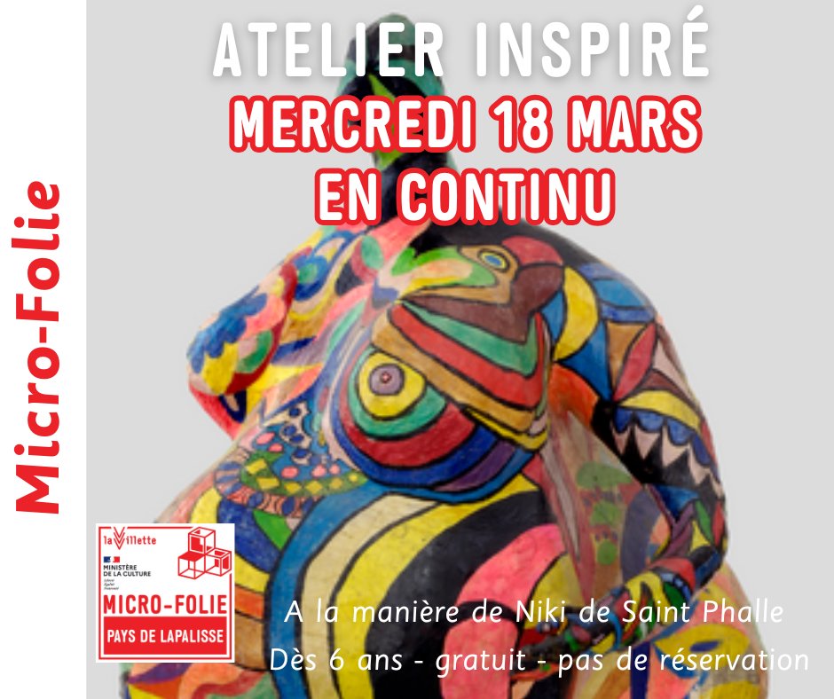 Ce mercredi 18 mars, atelier inspiré de l'oeuvre de Niki de Saint Phalle ! Venez créer de belles "nana" en formes et en couleurs