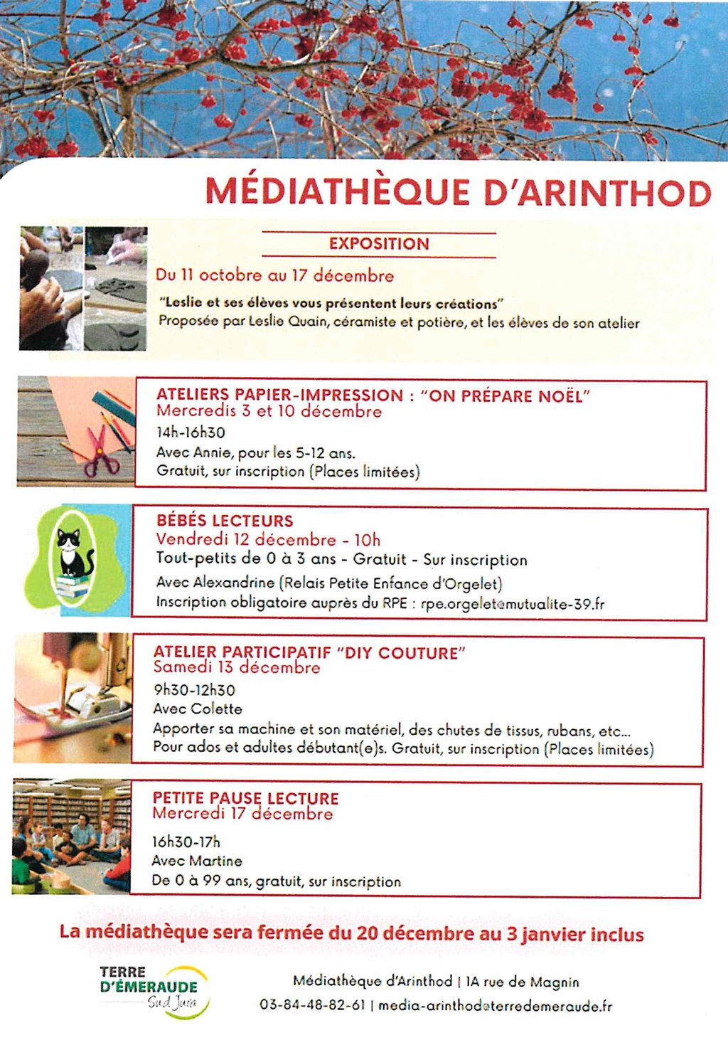 La médiathèque sera fermée du 20 décembre au 3 janvier inclus.