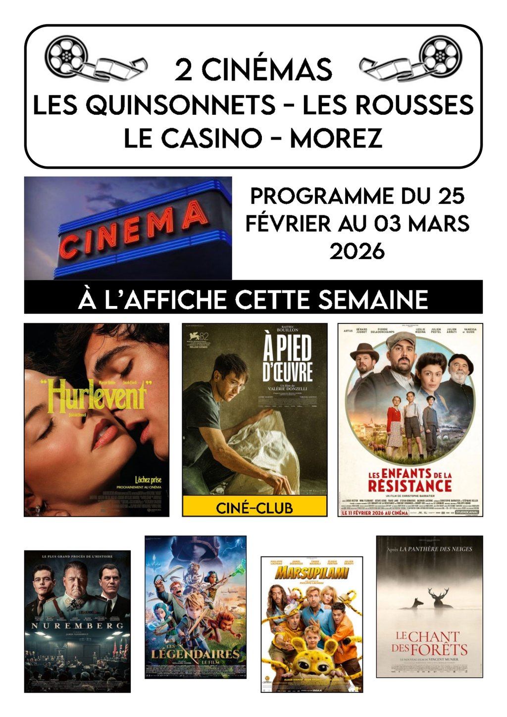 Programme Cinéma Morez/Les Rousses du 25 fevrier au 3 mars 2026
