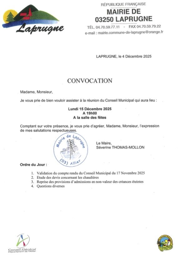 Publié le jeudi 04 décembre 2025 - Laprugne