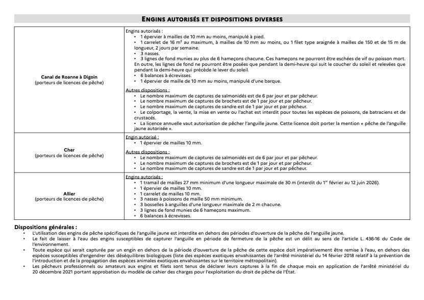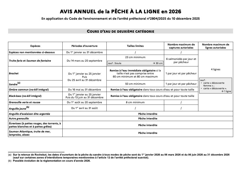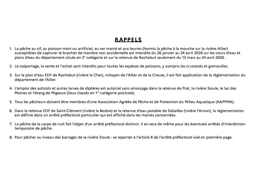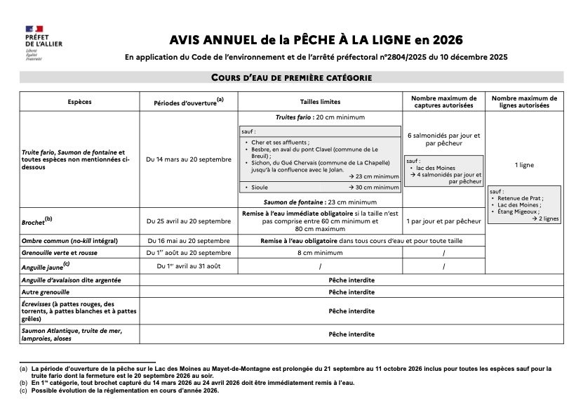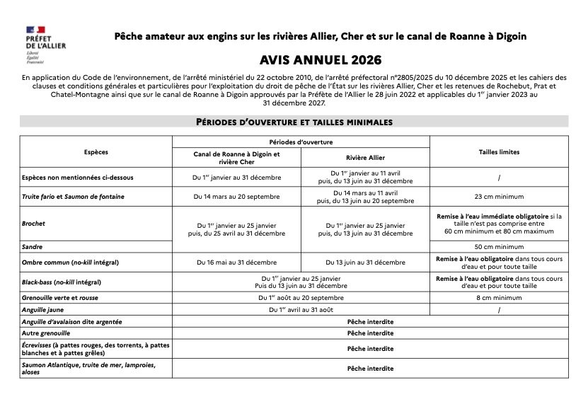 Arrêté relatif à la pêche en eau douce dans le département de l'Allier pour l'année 2026.