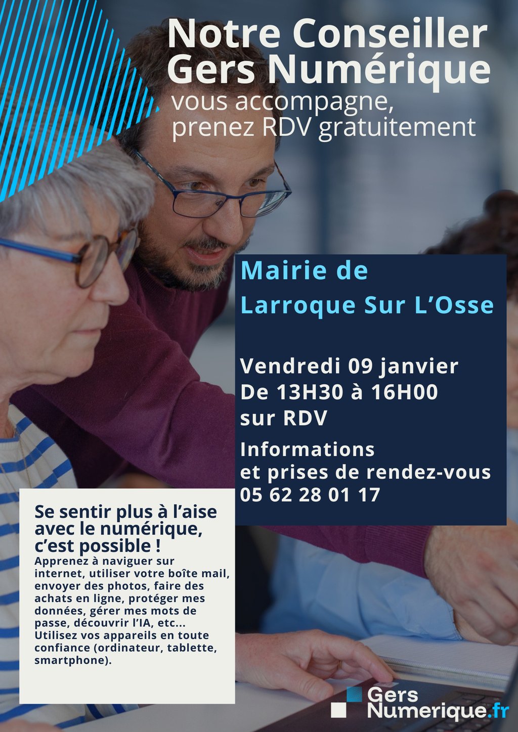 💻 Permanence Conseiller Gers Numérique à la Mairie de Larroque-sur-L'Osse