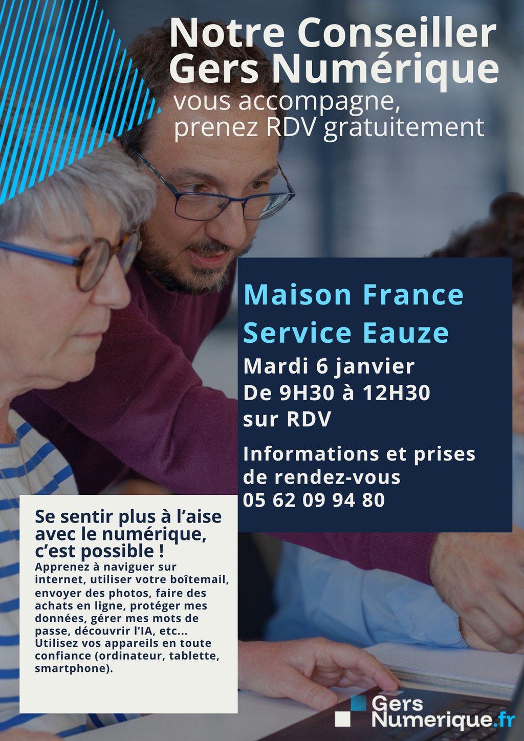 📍 Le conseiller Gers Numérique se déplace au plus près de chez vous pour vous accompagner gratuitement et individuellement sous forme d'atelier.