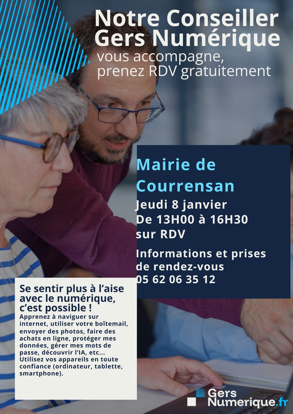 📍 Le conseiller Gers Numérique se déplace au plus près de chez vous pour vous accompagner gratuitement et individuellement sous forme d'atelier.