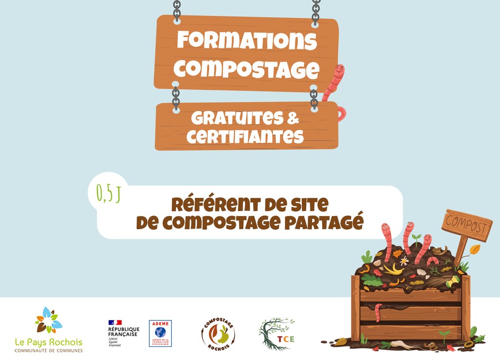 La Communauté de communes du Pays Rochois vous propose une formation certifiante et gratuite d'une demi-journée pour devenir acteur du compostage et semez les bonnes pratiques ;