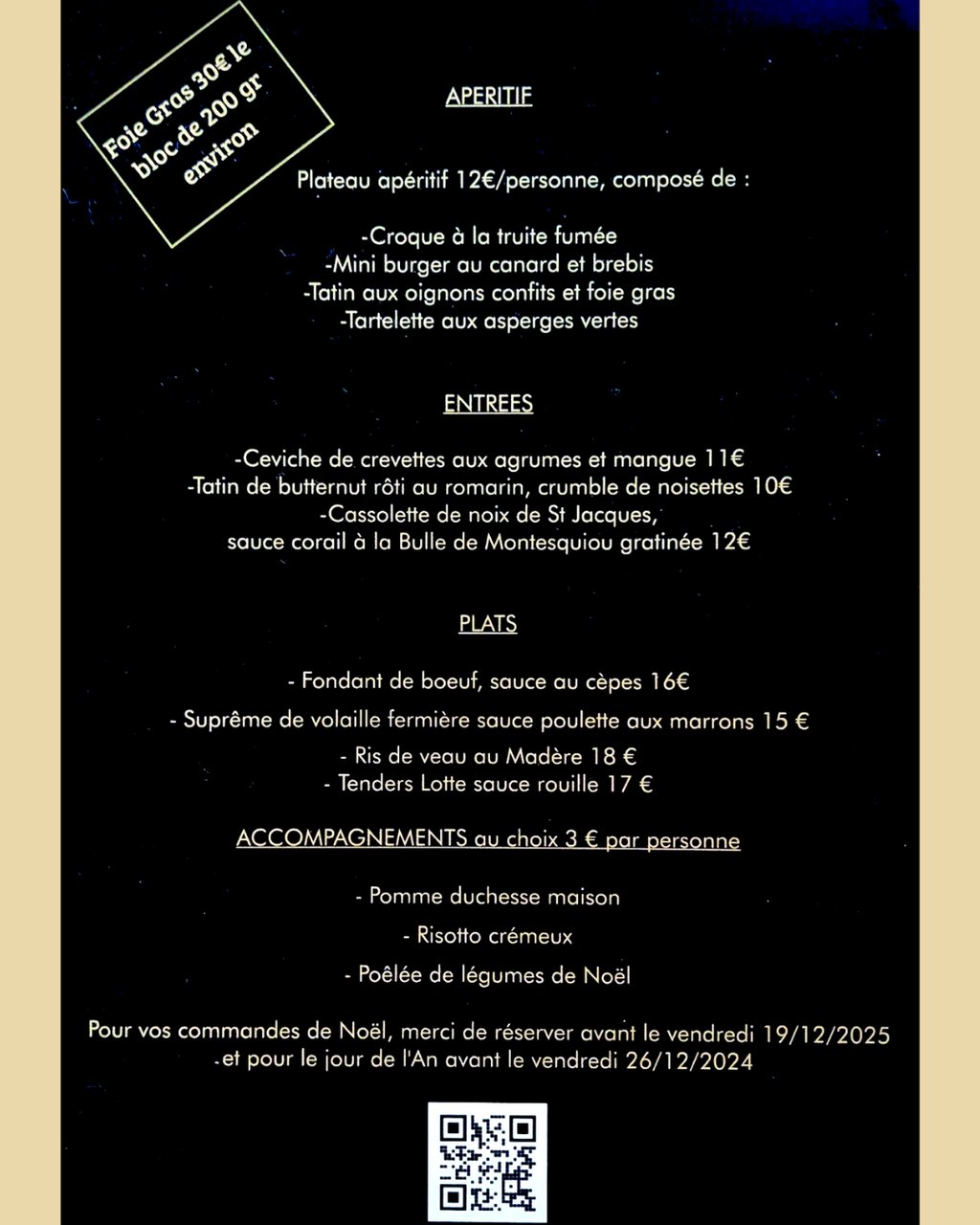 REPAS DÉGUSTATION DE LA CARTE DES FÊTES