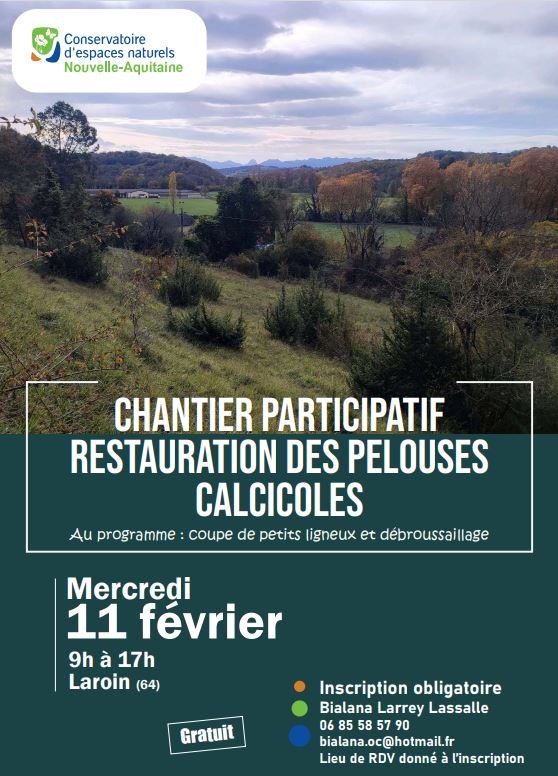 Cet événement est organisé par le Conservatoire d’Espaces Naturels (CEN) Nouvelle-Aquitaine et coanimé par mes soins. Il propose une action de gestion écologique concrète (coupe de petits ligneux et débroussaillage) visant à restaurer des pelouses calcicoles et à mobiliser le public autour de la biodiversité locale.