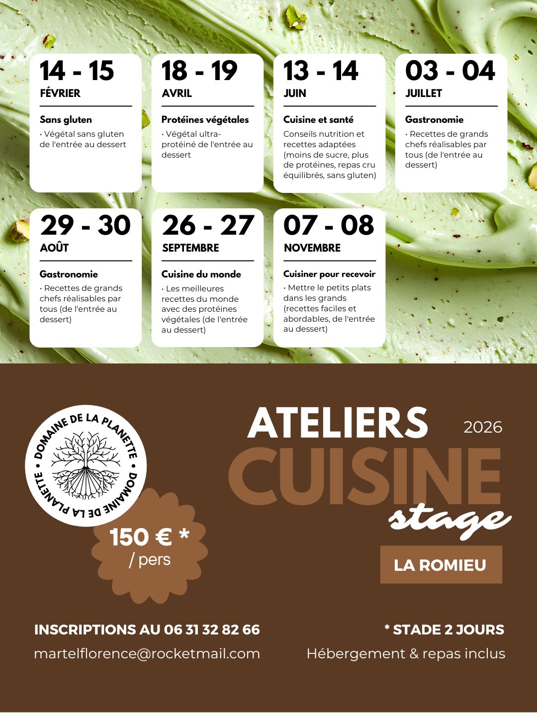 Retrouvez tous les ateliers et les stages de cuisine végétale proposés par Madame Florence MARTEL à La Romieu tout au long de l'année.