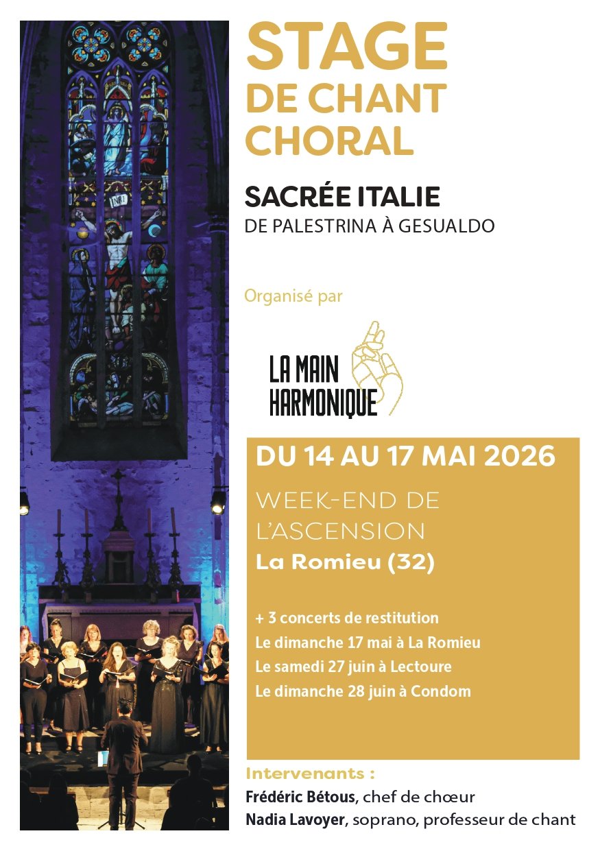 L'association "La Main Harmonique" propose un stage de chant choral sur le thème "Sacrée Italie" de Palestrina à Gesualdo.