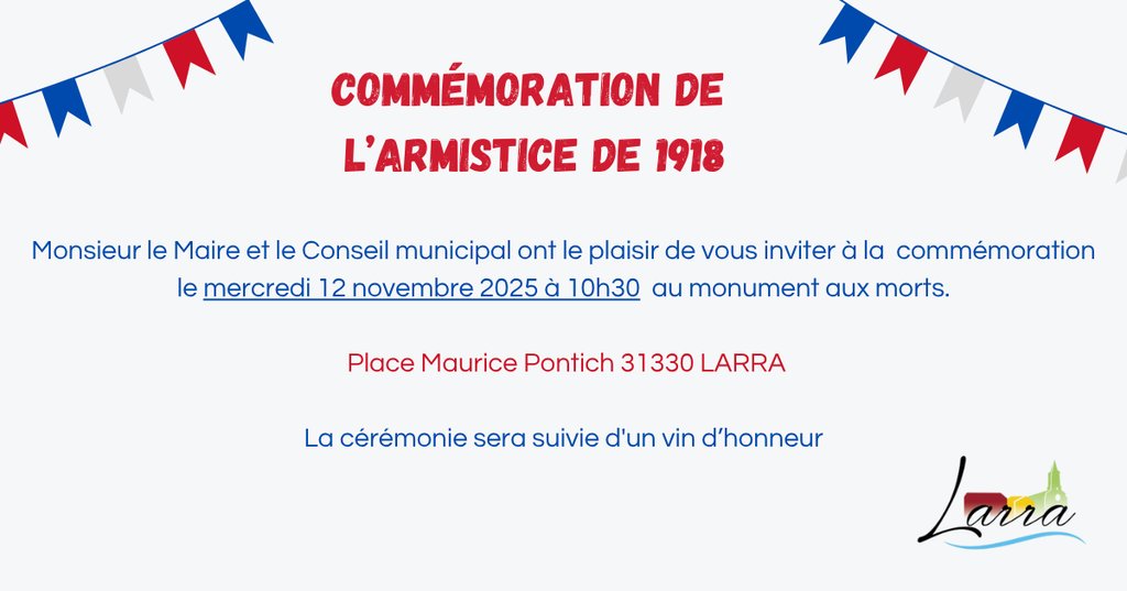 La commune de Larra vous invite à sa commémoration de l'armistice 1918