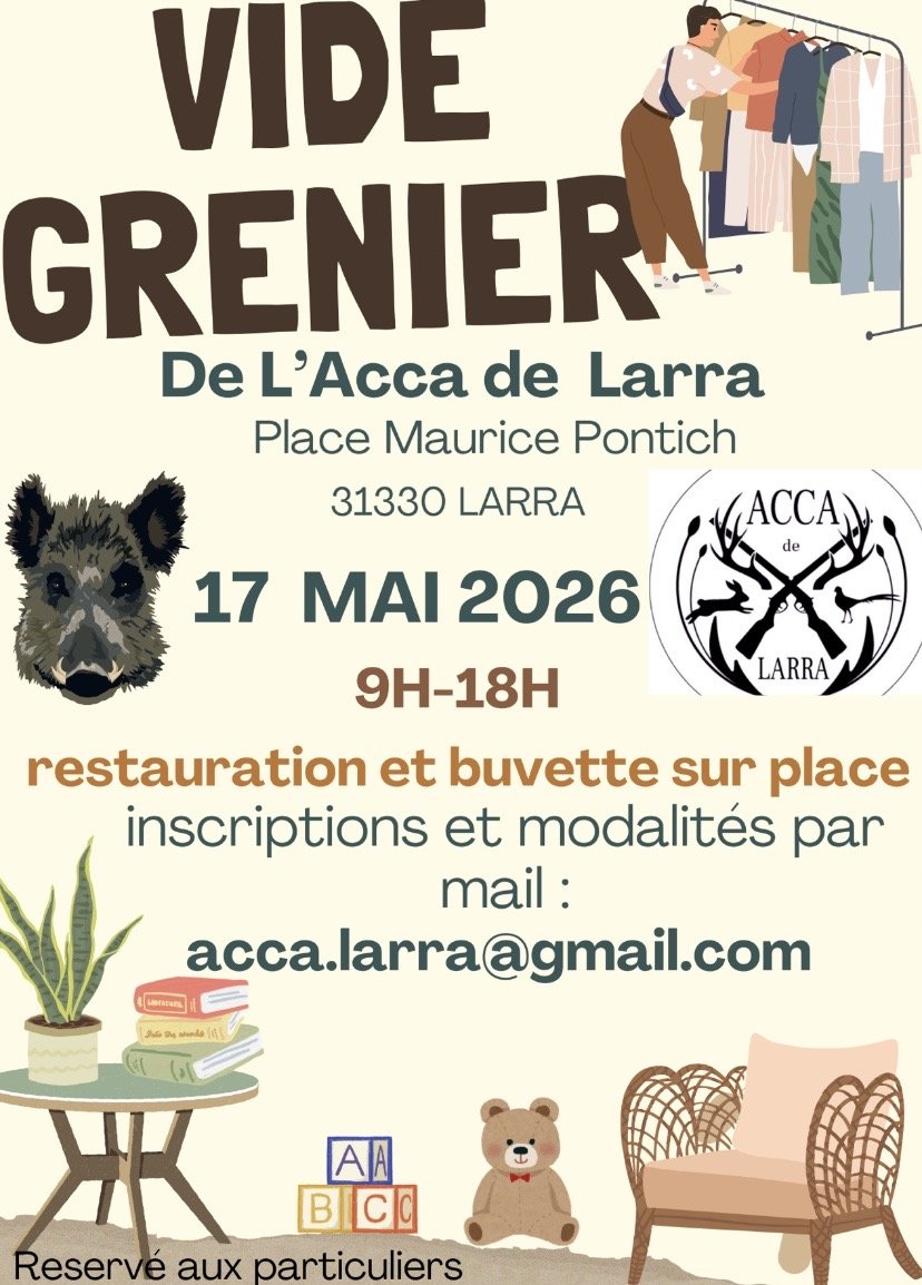 Cette année encore l’acca de LARRA organise son vide grenier .