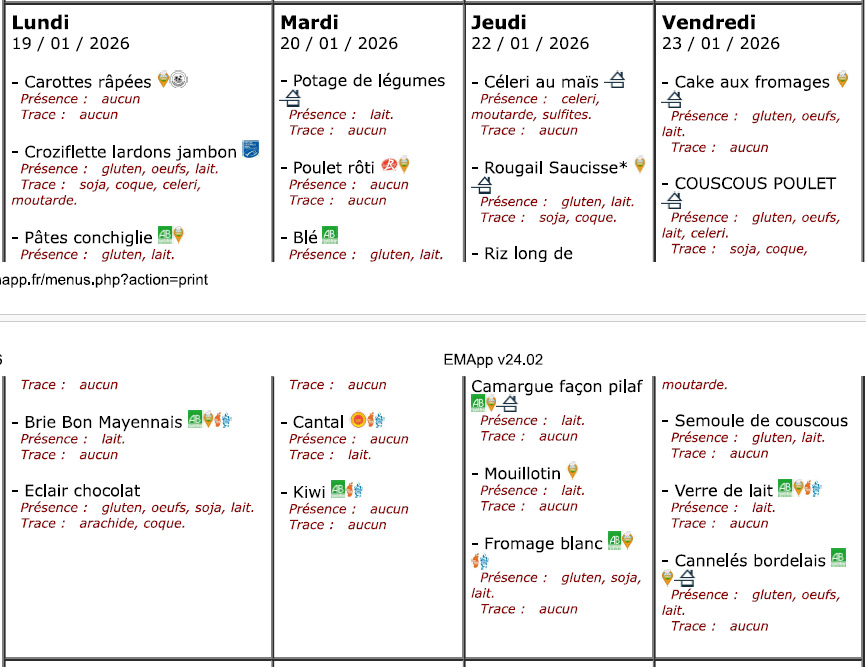 Les menus du restaurant scolaire pour la semaine 4 sont disponibles. Bon appétit !
