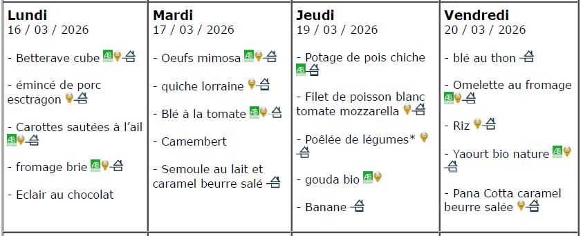 Les menus de la semaine 12 sont disponibles. Bon appétit !