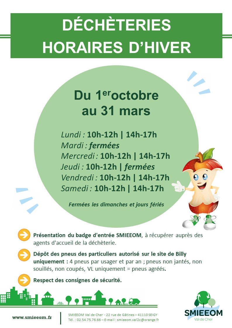 HORAIRES D'HIVER DÉCHÈTERIES