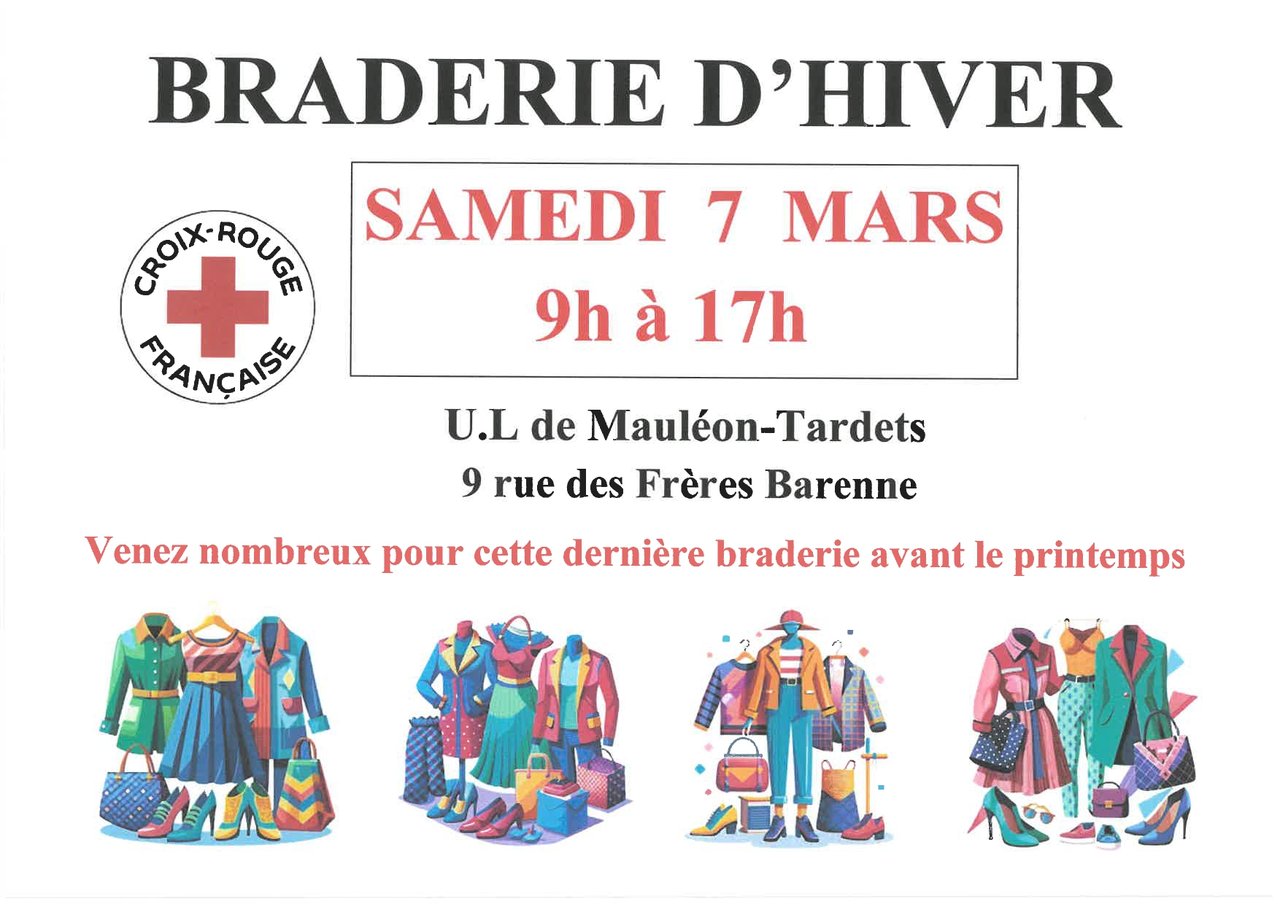 BRADERIE D'HIVER Croix Rouge Unité Locale de Mauléon et Tardets de 9H à 17H. 👕