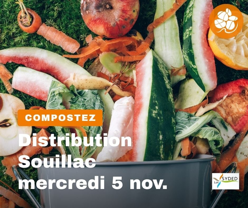 📅 mercredi 5 novembre 2025, de 15h à 19h, rendez-vous salle Joachim Du Bellay à Souillac pour une distribution gratuite de composteurs individuels, organisée par Cauvaldor et le SYDED.