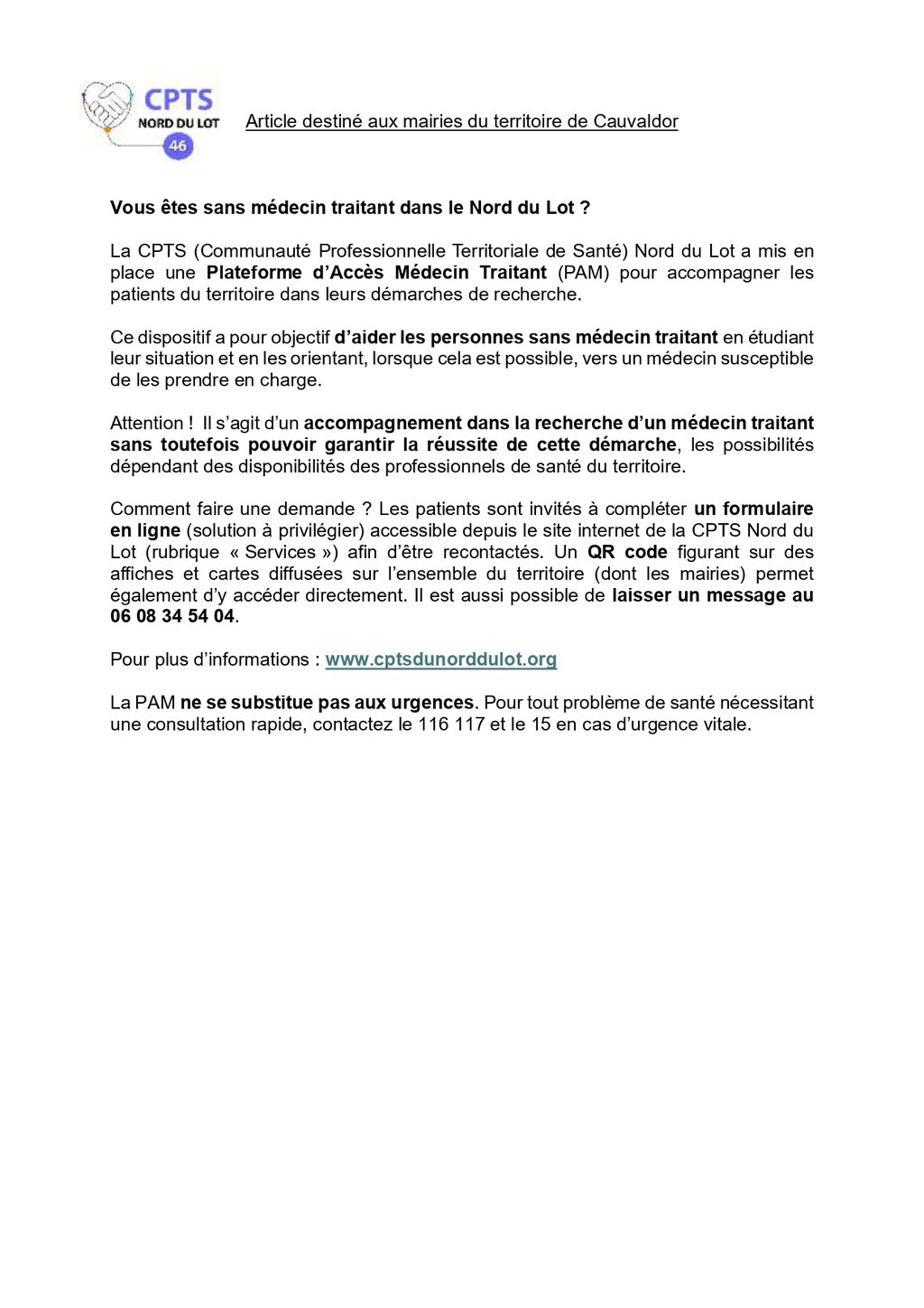 SANS MEDECIN TRAITANT DANS LE NORD DU LOT ?
