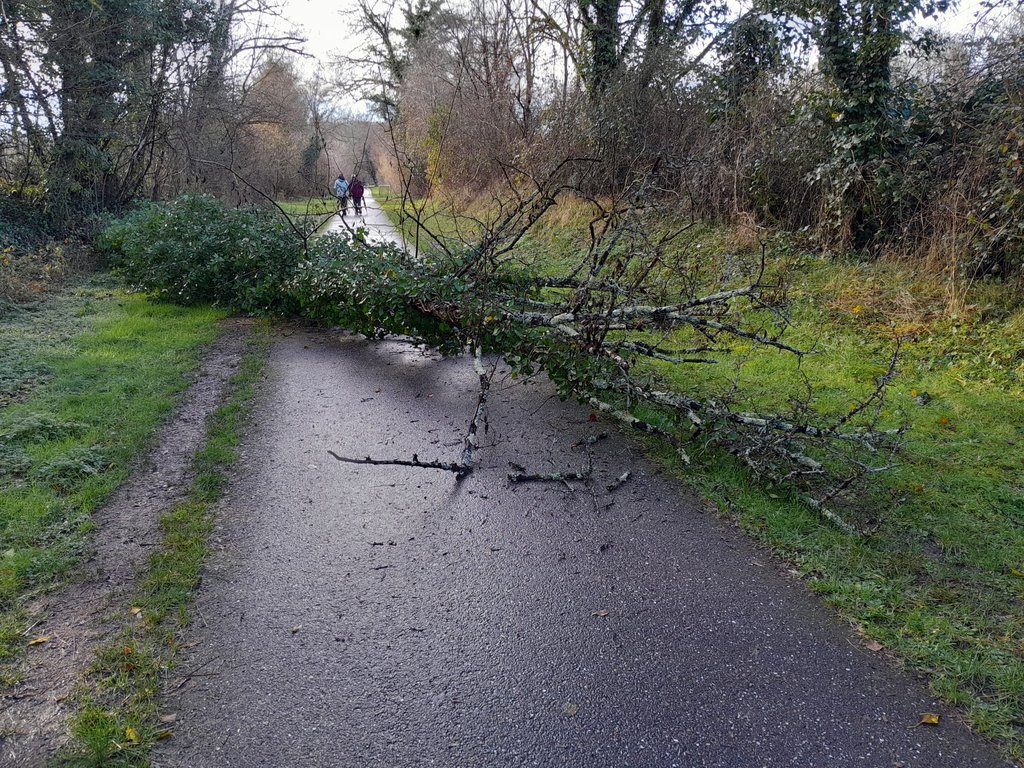 Un arbre coupe la piste Roger Lapébie. Le Département de la Gironde est prévenu et envoie les équipes pour dégager l'accès.