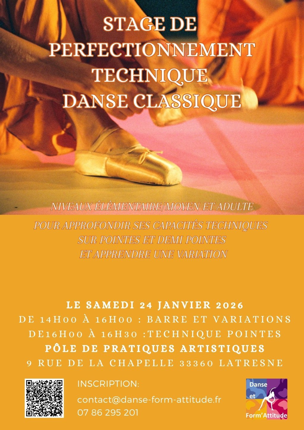 Stage de perfectionnement technique classique 1/2 pointes et pointes pour niveaux élémentaire-moyen et adultes.