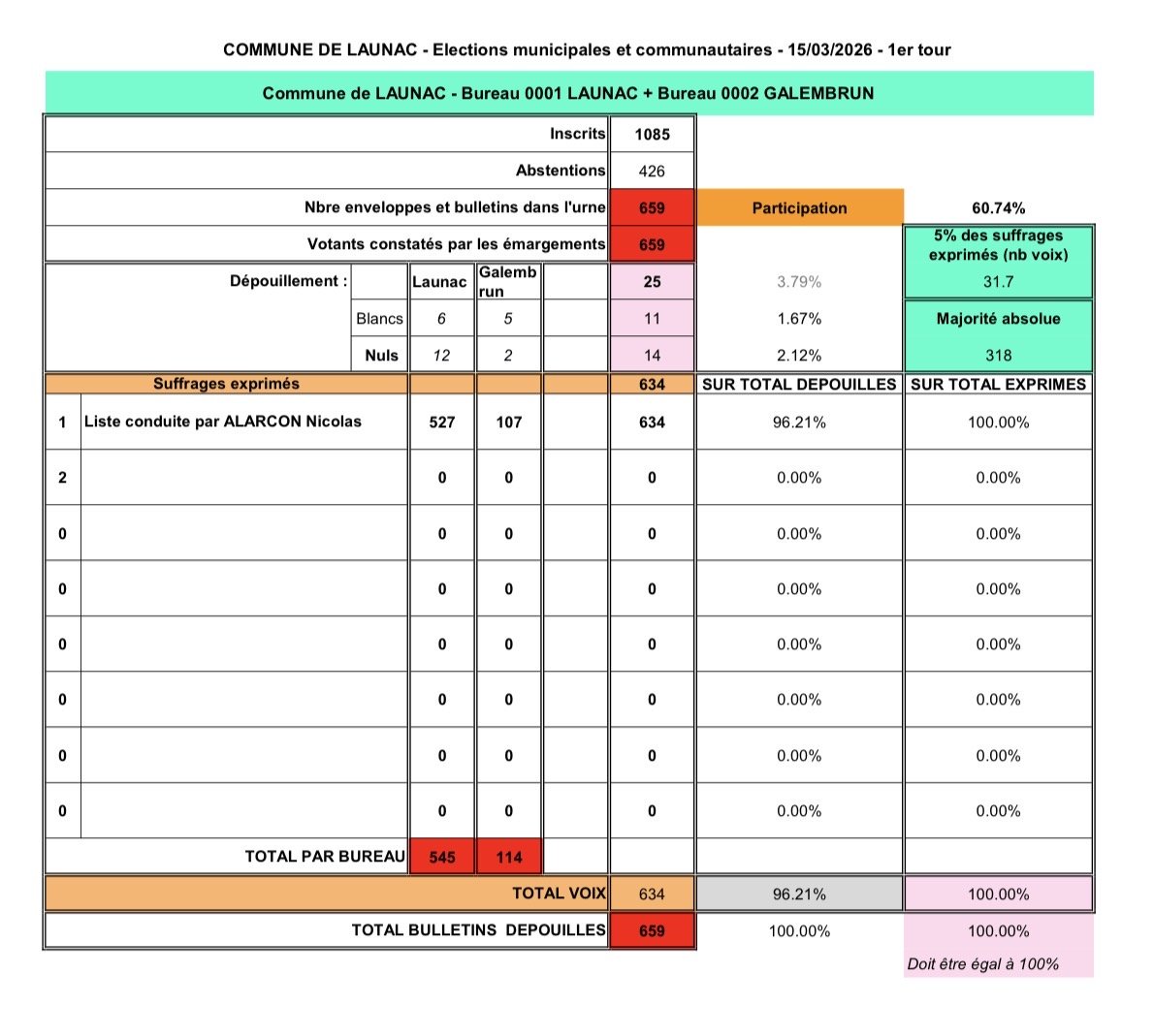 RÉSULTAT DES MUNICIPALES À LAUNAC