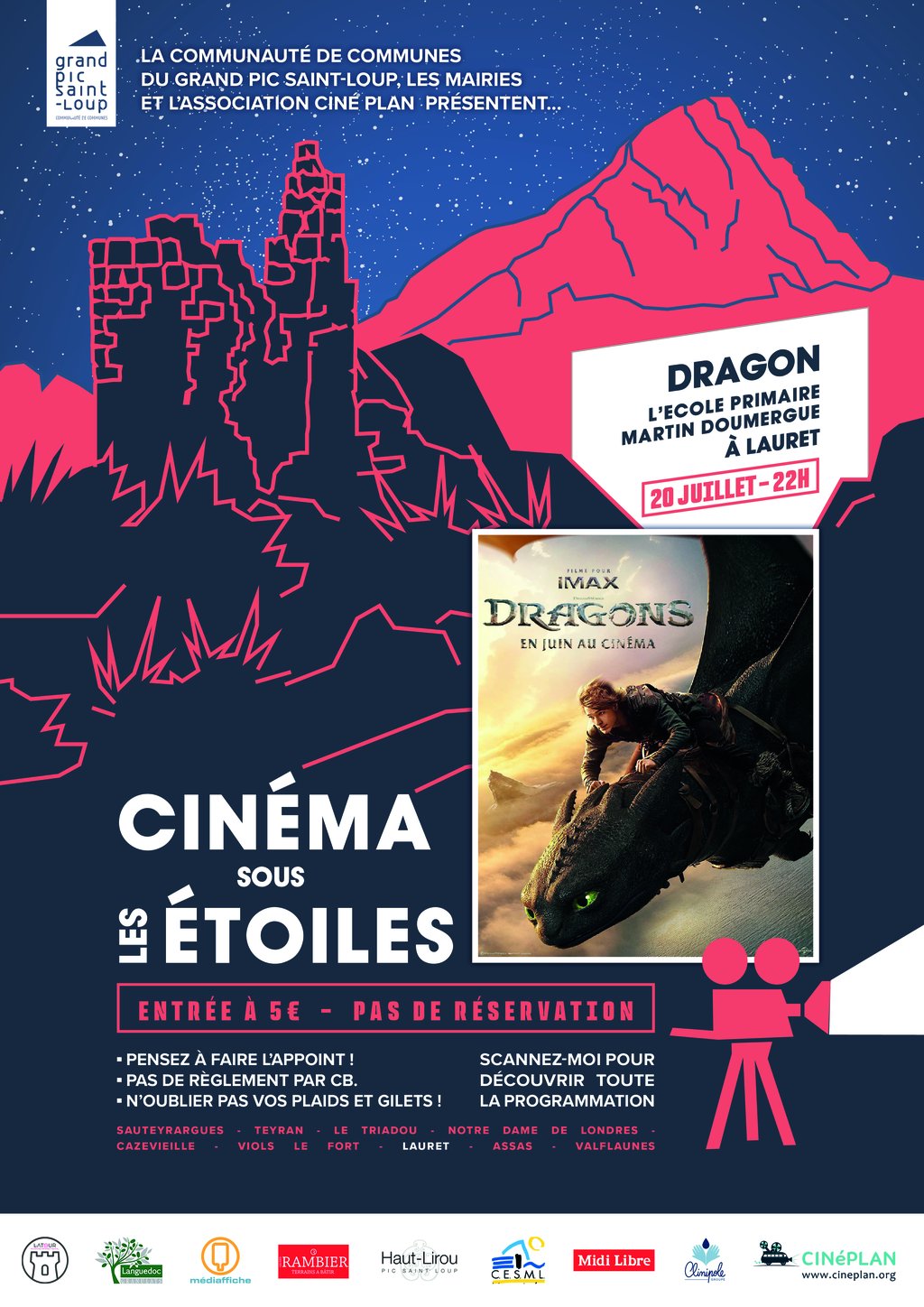 La Communauté de Commune en Grand Pic Saint-Loup, la mairie et l'association Cinéplan présentent une séance de cinéma en plein air le dimanche 20 juillet 2025 à 22h00 dans la cour de l'Ecole Primaire (2 route de Montpellier 34270 LAURET).