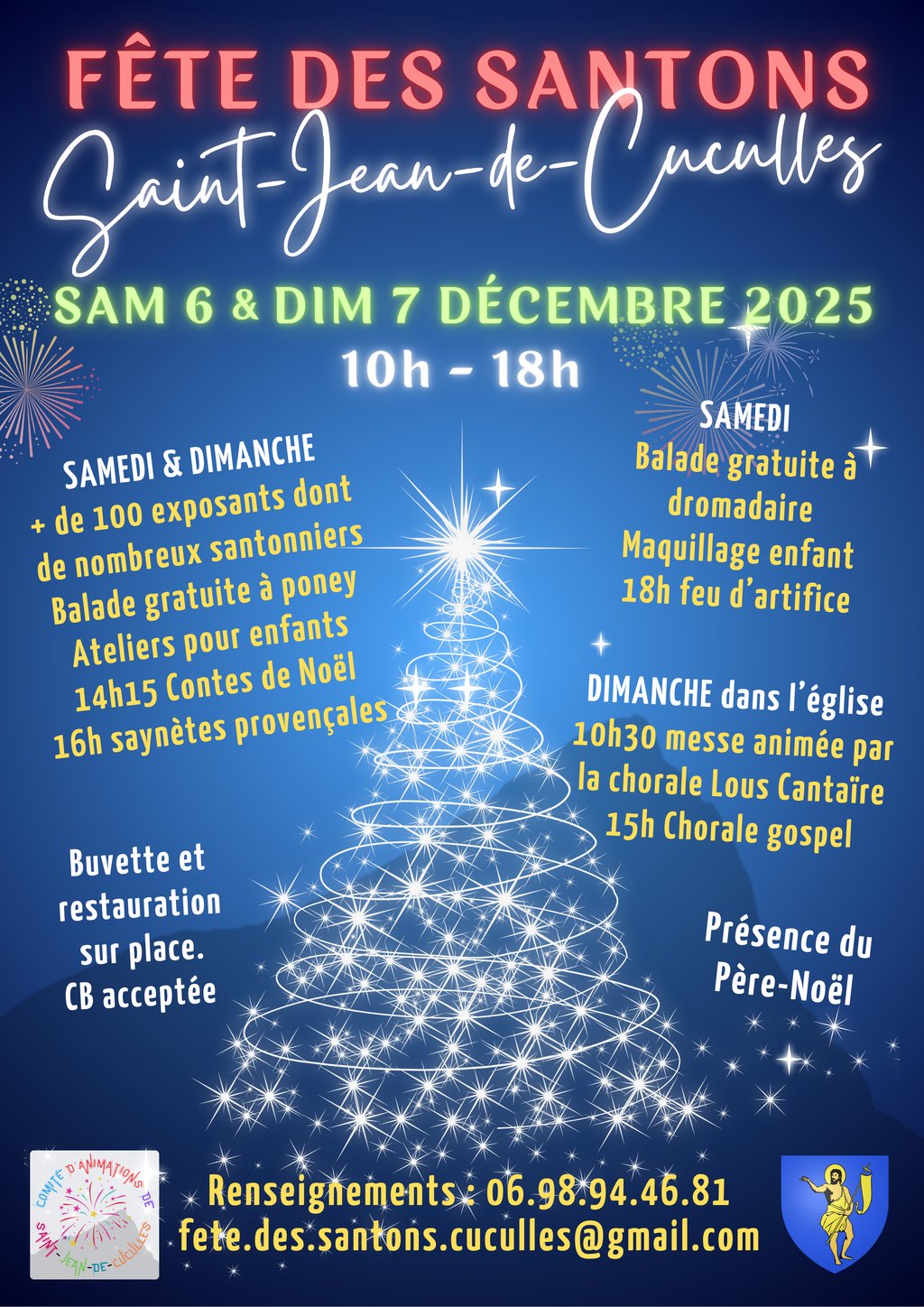Renseignements : par téléphone 06 98 94 46 81 ou par e-mail fete.des.santons.cuculles@gmail.com