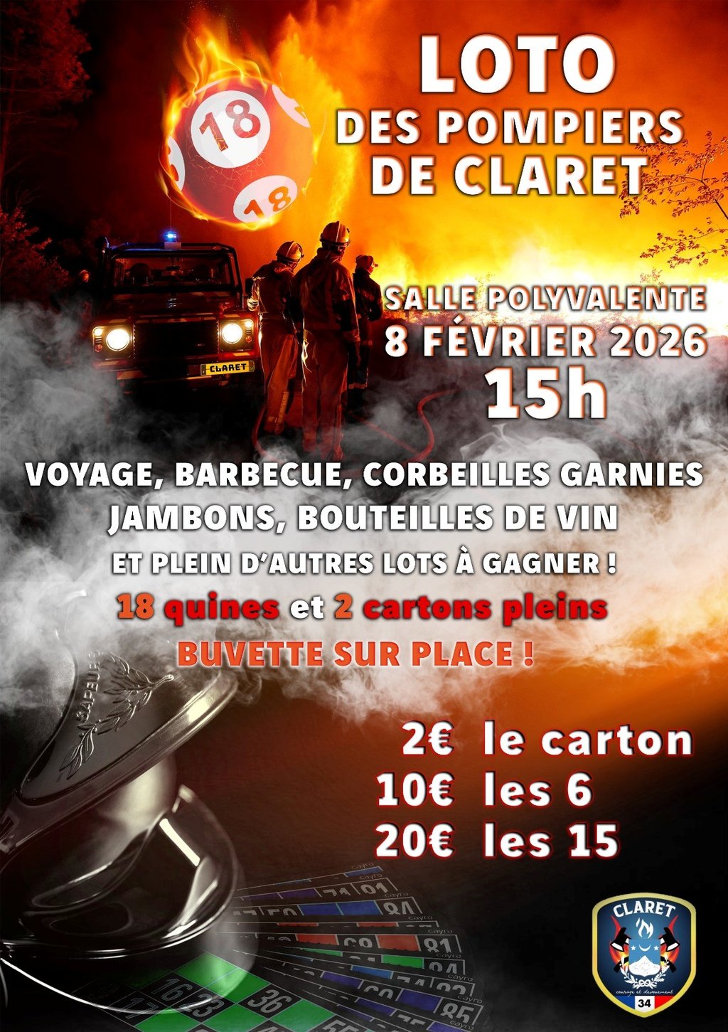 DIMANCHE 8 FÉVRIER 2026 À 14H - LOTO SALLE POLYVALENTE DE CLARET - LES POMPIERS DE CLARET
