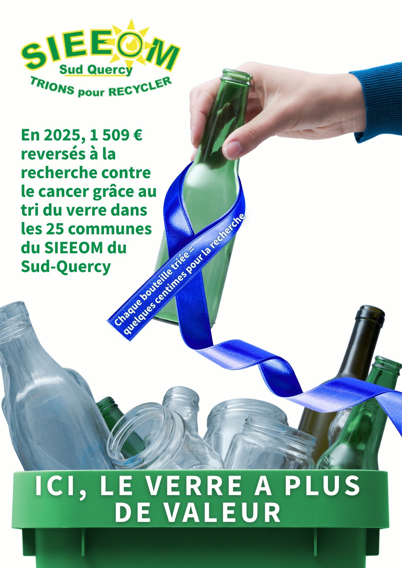 Cette année, la mobilisation des habitants des 25 communes du SIEEOM a permis d’enregistrer une augmentation de 3 % du volume de verre trié, traduisant une implication croissante en faveur du recyclage et de la solidarité.