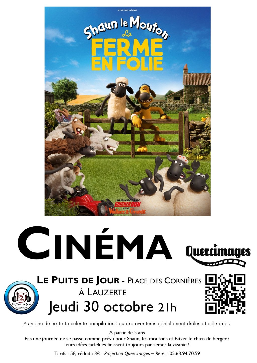 Soirée Cinéma Petits & Grands : Shaun le Mouton : la ferme en folie