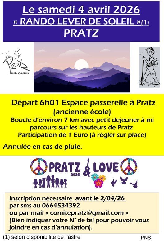 Inscription avant le 02/04/2026 au 06 64 53 43 92 ou comitepratz@gmail.com