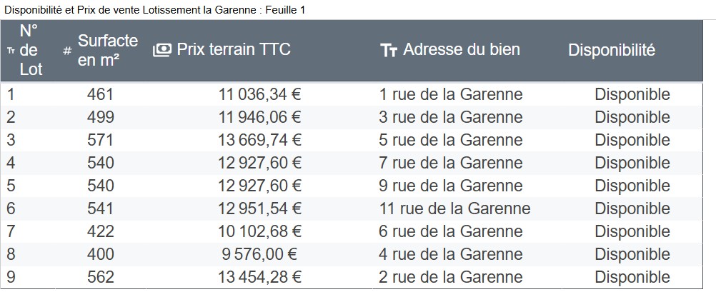 TERRAINS EN VENTE DANS LE LOTISSEMENT LA GARENNE