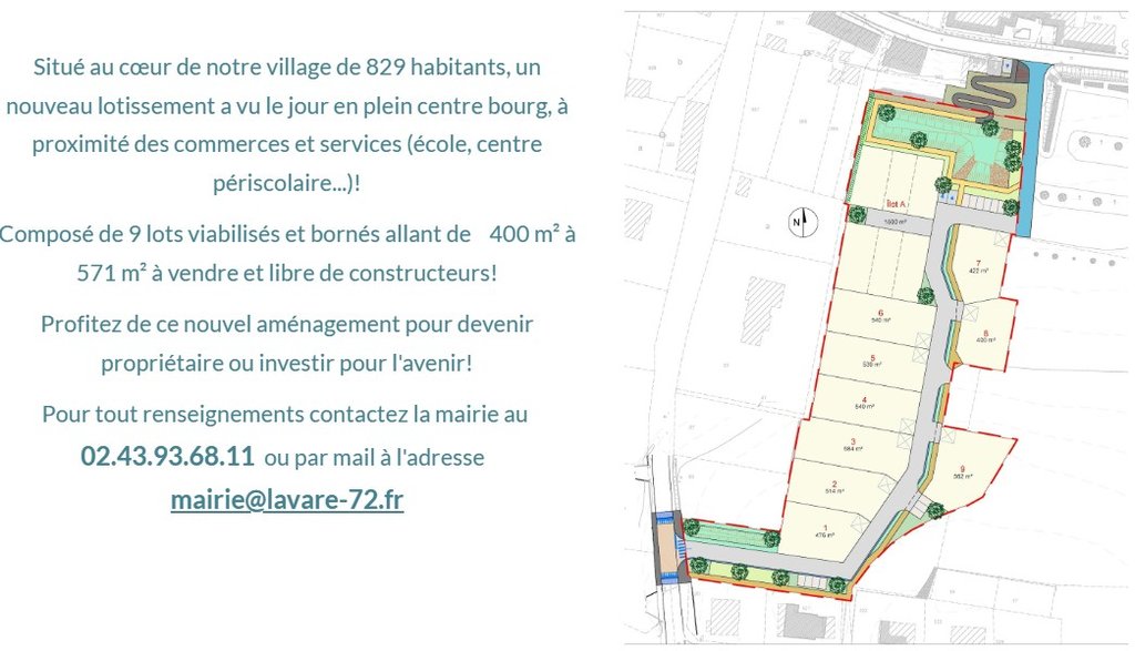 9 lots de terrains sont en vente dans le lotissement la Garenne, en plein centre bourg.