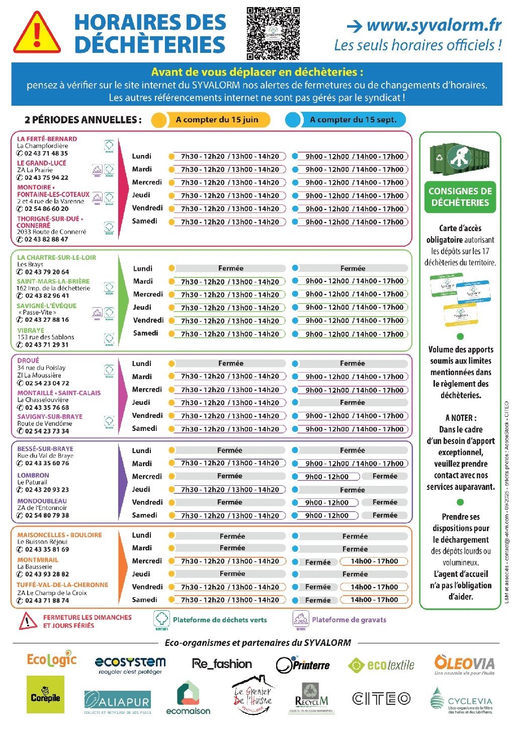 SYVALORM : HORAIRES DES DÉCHÈTERIES ET JOURS DE RAMASSAGE DES ORDURES MÉNAGÈRES SUR 2026